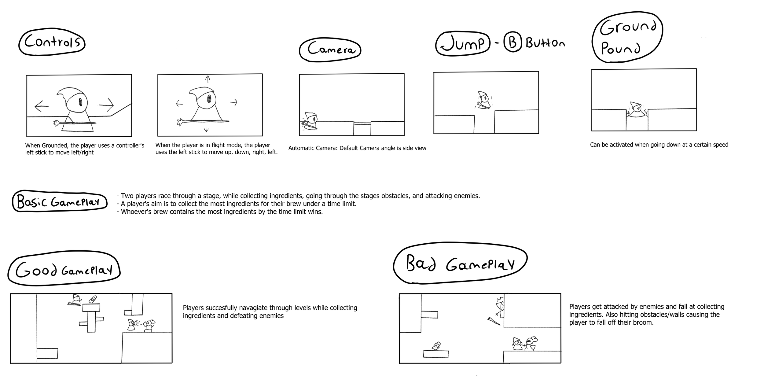Game Pillars: Fast Paced Sidescroller | Being a Witch (Witch Spells that can Help/Hurt in a chaotic way) | Competitive/Betrayal (The Evolution of Trust The Evolution of Trust (ncase.me))