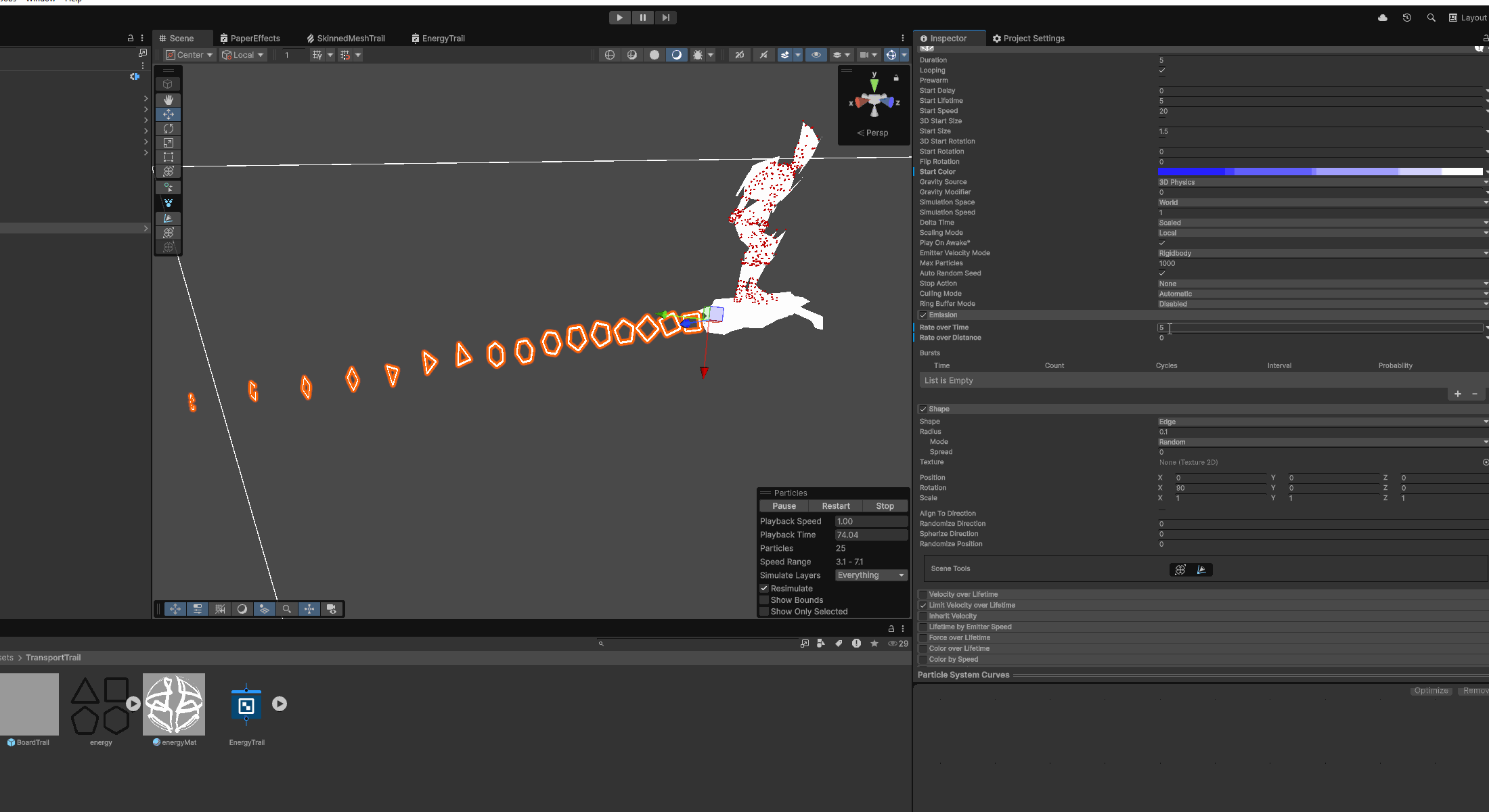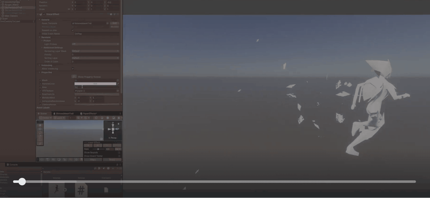 A VFX Graph was developed to extract vertex positions from a skinned mesh by baking them into a mesh asset, enabling particle systems to spawn directly from the original geometry. This approach allowed for highly integrated visual effects that appeared to emerge organically from the character's surface. The system included adjustable parameters for particle size, color, lifetime, velocity, and selectable textures, supporting four unique texture options.